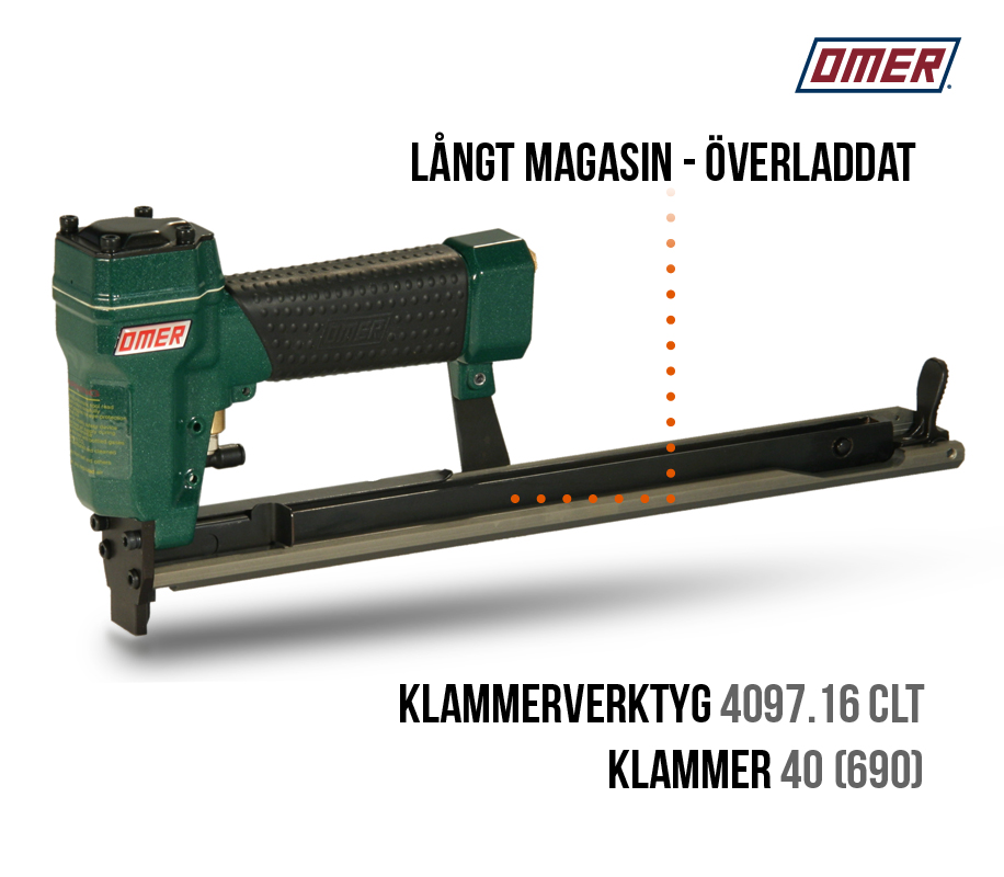 Klammerverktyg 4097.16 CLT (Klammerpistol) är ett tryckluftdrivet enkelskottsverktyg med långt överladdat magasin för professionella användare t.ex. inom möbelindustrin, samt tillverkning av lådor, presentlådor och presentförpackningar.